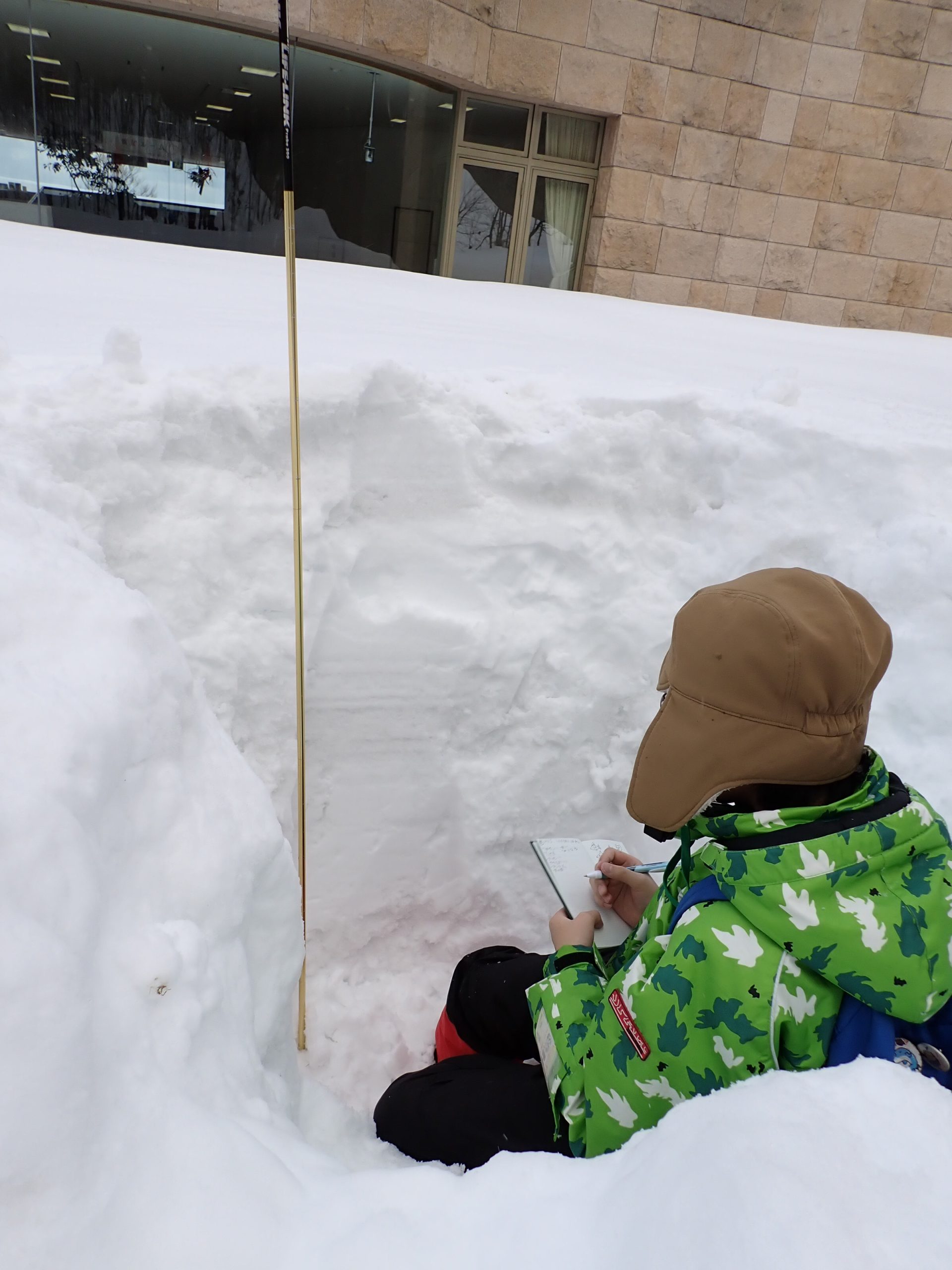 ●服装;雪の中で活動できる服装、長靴またはスノーブーツ、防水の手袋、帽子